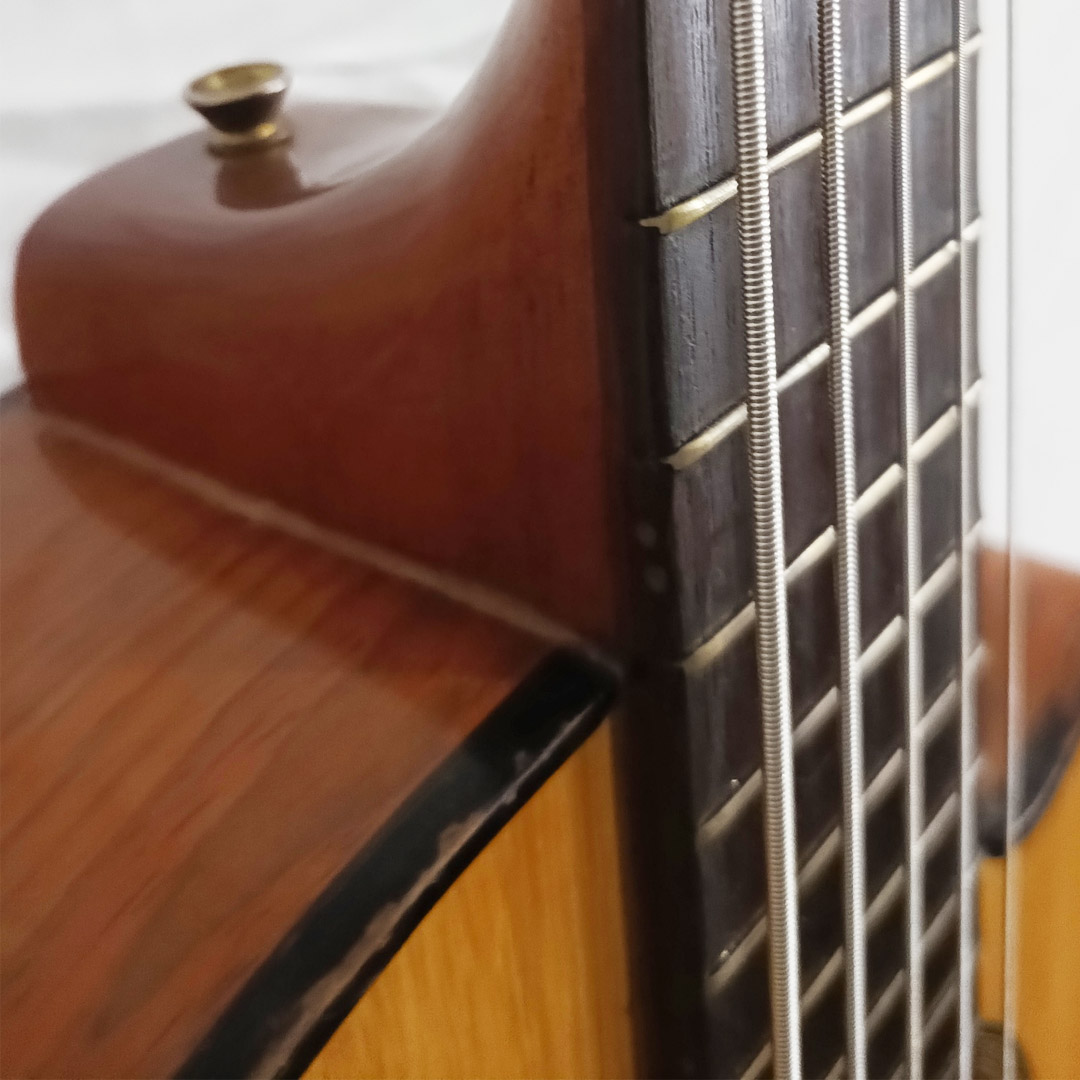 Originalmente una guitarra Gracia M10EQ, el luthier Ignacio Zumpano la transformó en este bajo de 5 cuerdas de nylon. Con preamp de 4 bandas y un look natural brillante, es ideal para bajistas que buscan algo único. No me urge venderla, pero si alguien la valora, podemos hablar.